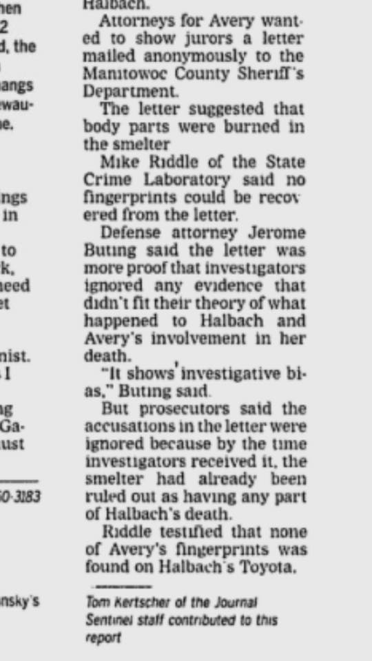- Why none of Halbach’s DNA was ever found in Avery’s trailer, when according to the prosecution’s own theory that is where she is tied up, raped and stabbed with a knife.